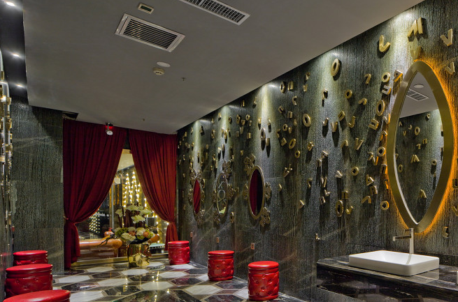 選材:古木紋、銀白龍、斑馬石、新拉法、雅士白、松香玉、發(fā)紋鍍香檳金、肌理漆、橡木木飾面、銀箔